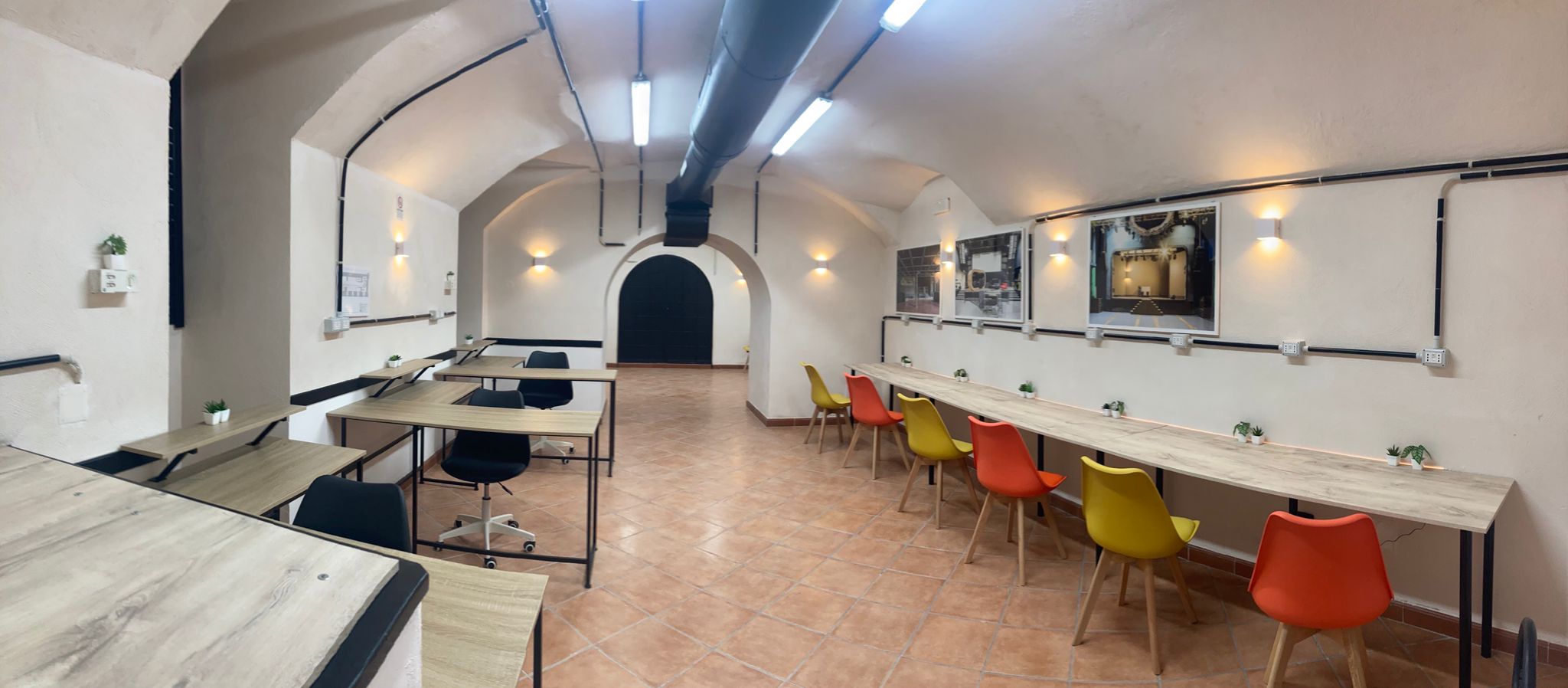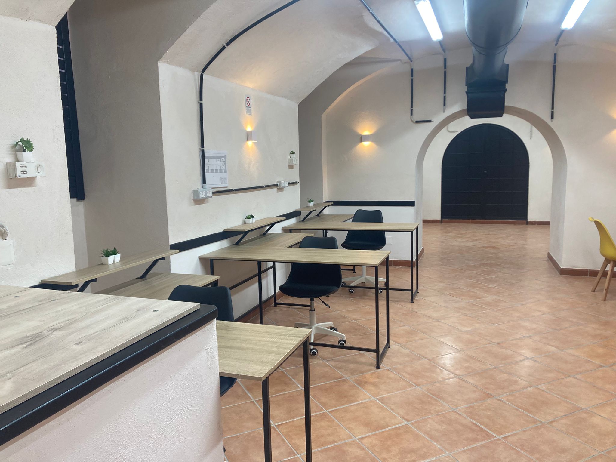 Il piano inferiore è dedicato interamente agli spazi di coworking, suddivisi in due sale separate e climatizzate: