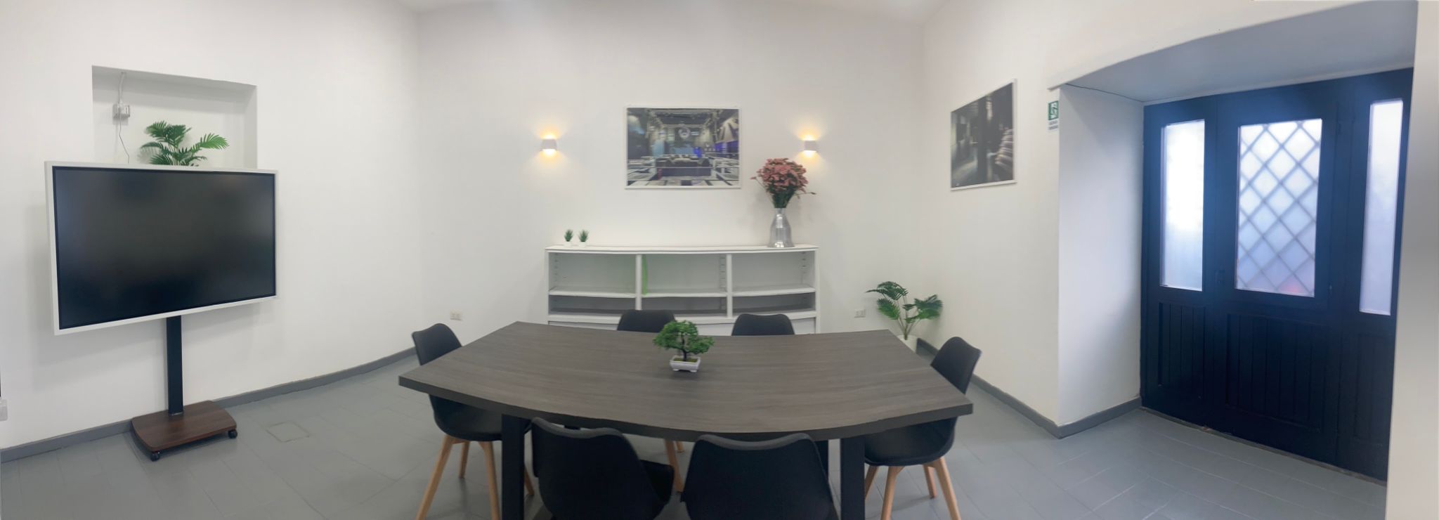 Al piano terra si trovano l'ingresso principale con vetrine su strada, un'area reception accogliente e la sala riunioni. Questa sala, con capienza fino a 8 persone, è attrezzata con lavagna multimediale interattiva, stampante dedicata e connessione Wi-Fi ultra veloce.